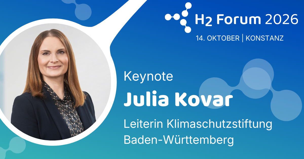 Das H2 Forum 2026 gewinnt mit Julia Kovar als Keynote Sprecherin eine starke Stimme und Impulsgeberin. Seit fünf Jahren leitet sie die Klimaschutzstiftung Baden-Württemberg und verantwortet dort unter anderem die strategische Ausrichtung der Stiftung.